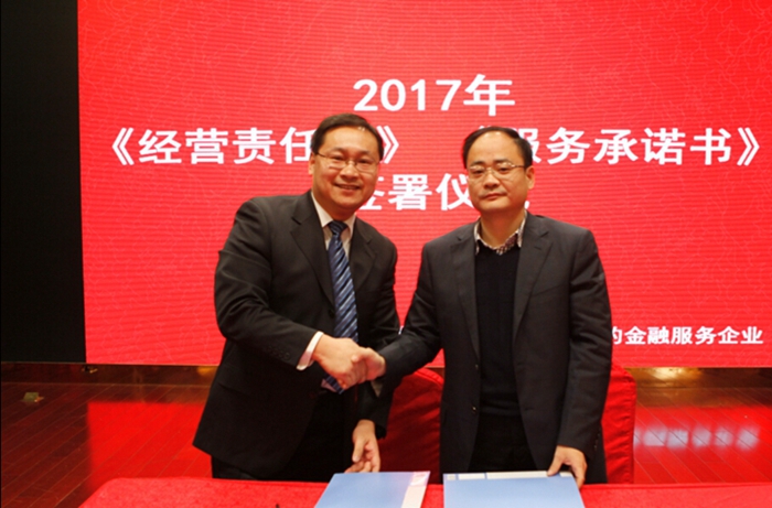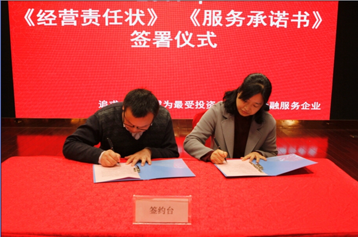 隨后,公司領(lǐng)導(dǎo)與各業(yè)務(wù)部門及金財(cái)匯頂子公司簽署了《2017年度經(jīng)營目標(biāo)責(zé)任書》,與各中后臺(tái)及創(chuàng)新業(yè)務(wù)部門簽署了《2017年度服務(wù)承諾書》。