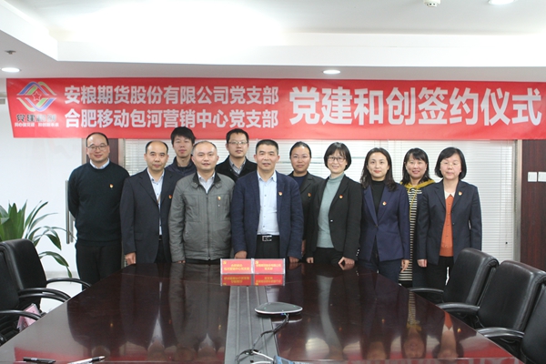 隨后,會議舉行了安糧期貨黨支部、合肥移動包河營銷中心黨支部“黨建和創(chuàng)”簽約儀式,兩位書記分別代表所在黨支部在《“黨建和創(chuàng)”活動倡議書》上簽字。