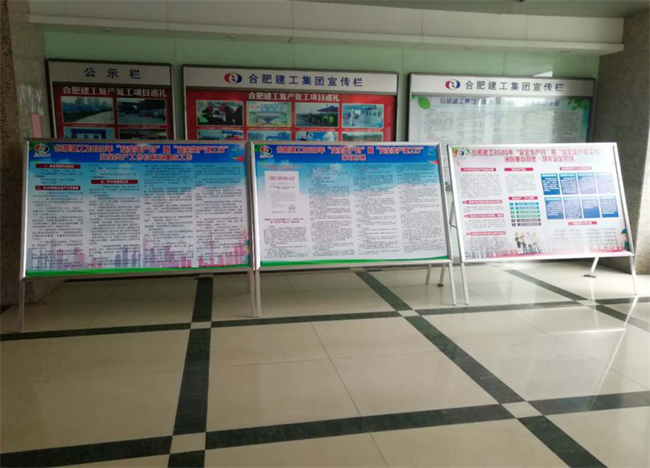 為切實(shí)增強(qiáng)全員安全生產(chǎn)意識和提升全員安全素質(zhì),合肥建工制作了“安全生產(chǎn)月”暨“安全生產(chǎn)建工行”宣傳展板在本部一樓大廳進(jìn)行宣傳展示,各項(xiàng)目部在工程顯著位置張貼、懸掛“安全生產(chǎn)月”宣傳標(biāo)語、橫幅、掛圖等,同時利用 LED 屏宣傳,在LED電子顯示屏上持續(xù)滾動播放安全公益廣告等,積極營造關(guān)心安全生產(chǎn)、參與安全發(fā)展的濃厚輿論氛圍。