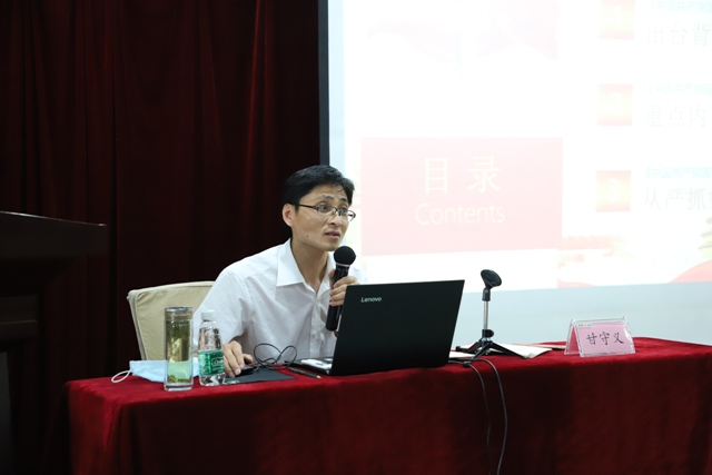 在兩個(gè)小時(shí)的課程中,甘教授充分聯(lián)系《條例》制定的背景、內(nèi)容和具體貫徹落實(shí)等三個(gè)方面對(duì)《條例》進(jìn)行了全面解讀,并深入詮釋了《條例》作為我們黨關(guān)于國(guó)有企業(yè)第一部重要黨內(nèi)法規(guī)的重要意義。