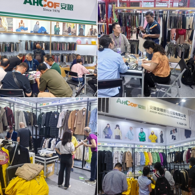 服裝展位則緊扣“綠色環(huán)保”與“工藝創(chuàng)新”兩大趨勢:棉服系列采用再生棉材質(zhì),精準契合全球低碳消費需求;PU雨衣類服裝應用高頻工藝,無需縫線即可實現(xiàn)平整外觀,兼顧視覺美感與實用性能。這一系列創(chuàng)新產(chǎn)品成功吸引來自法國、英國、比利時等歐洲中高端市場采購商重點關注,已有多組客戶明確表達合作意向。