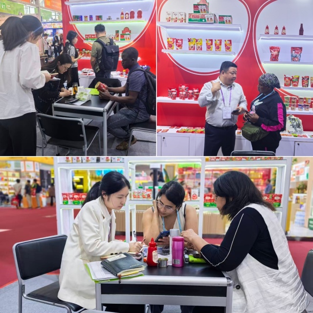 在食品展區(qū),本次以番茄沙司系列為核心,不僅推出青椒洋蔥味、蘑菇味等多款差異化創(chuàng)新口味,更搭配PET瓶裝、帶嘴立袋兩種新型包裝,融合獨特的南美風味,憑借高顏值與優(yōu)口感贏得全球采購商青睞,市場反饋熱烈。截至目前,已與非洲、中東、東南亞及“一帶一路”沿線核心市場的采購商,初步達成十個貨柜的番茄沙司采購意向,覆蓋多區(qū)域主流消費需求。