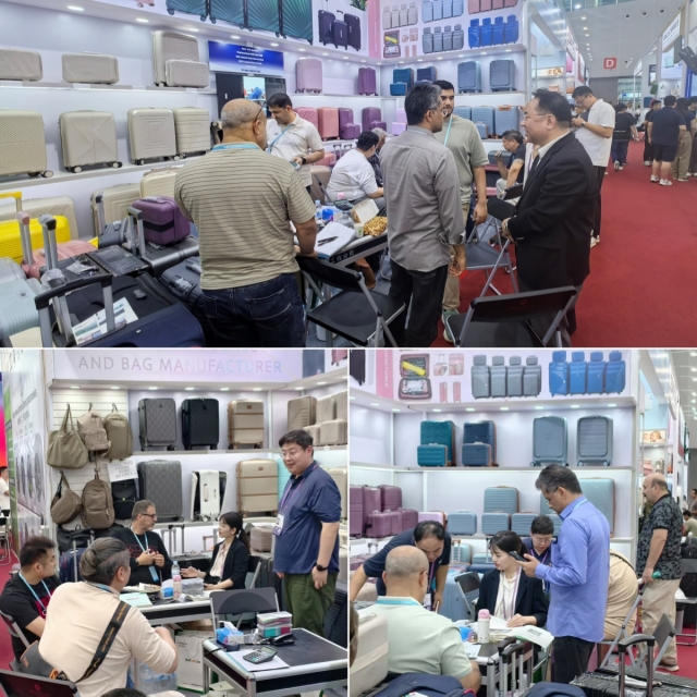 在箱包展區(qū),為精準匹配全球不同市場消費需求,箱包團隊精心籌備70余款樣品,涵蓋新款外觀PP箱、鋁框前開PC箱、大容量軟包等多材質(zhì)、全尺寸產(chǎn)品,更推出雙面前開PP箱、可壓縮雙肩背包等潮流新品,全面覆蓋出行、收納等多元場景。多款樣品憑借“輕便抗摔、易于定制、辨識度高”的核心優(yōu)勢,成為采購商關注焦點。開展首日,箱包展區(qū)便迎來“開門紅”,不僅斬獲歐洲、中東、南美等多區(qū)域客戶的現(xiàn)場簽單,同時與數(shù)十位全球采購商達成明確采購意向,展現(xiàn)出全球市場對安糧箱包產(chǎn)品的高度認可。