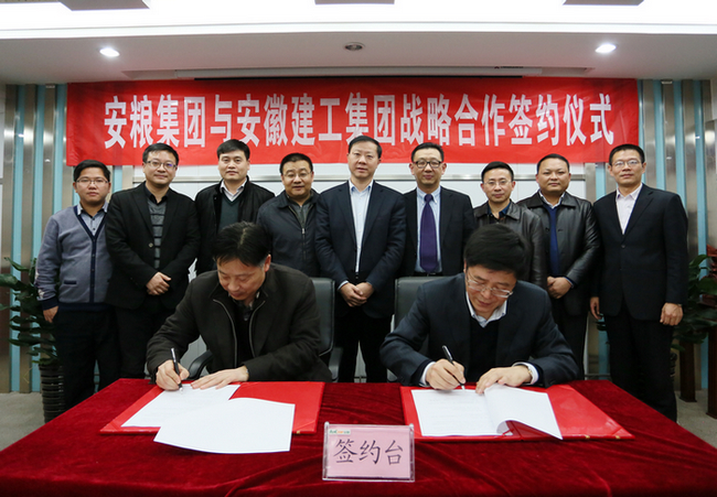 2015年12月3日,安糧集團(tuán)與安徽建工集團(tuán)戰(zhàn)略合作協(xié)議簽約儀式在盛安廣場22樓會議室舉行,安徽建工集團(tuán)副總經(jīng)理許克順、安糧集團(tuán)黨委副書記、安糧控股常務(wù)副總裁方宗友、安糧控股副總裁曹訓(xùn)立、安糧集團(tuán)總經(jīng)理助理周洪出席儀式。