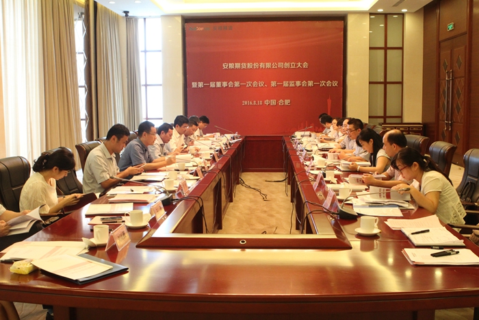 2016年8月18日,安糧期貨股份有限公司創(chuàng)立大會(huì)暨第一屆董事會(huì)第一次會(huì)議、第一屆監(jiān)事會(huì)第一次會(huì)議在稻香樓賓館徽苑巢湖廳隆重召開。公司股東單位領(lǐng)導(dǎo)及股東代表,安糧期貨經(jīng)營(yíng)管理層等相關(guān)人員出席了會(huì)議。大會(huì)審議通過(guò)了《安糧期貨股份有限公司籌辦情況報(bào)告》、《安糧期貨股份有限公司章程》、《安糧期貨股份有限公司股東大會(huì)議事規(guī)則》等13個(gè)議案,審議通過(guò)了安糧期貨股份有限公司第一屆董事會(huì)、監(jiān)事會(huì)、經(jīng)營(yíng)管理層人選。