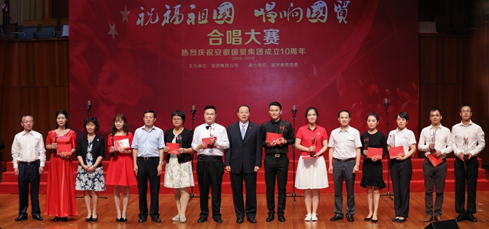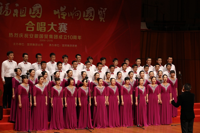 2016年9月28日,為慶祝中華人民共和國(guó)67周年華誕、紀(jì)念國(guó)貿(mào)集團(tuán)成立10周年,由國(guó)貿(mào)集團(tuán)主辦的“祝福祖國(guó),唱響國(guó)貿(mào)”合唱大賽在合肥大劇院隆重舉行。本次合唱比賽共有來(lái)自國(guó)貿(mào)系統(tǒng)的11支代表隊(duì)參加,其中安糧集團(tuán)派出兩支代表隊(duì),分別是由集團(tuán)本部、控股及控股除建工以外其他下屬企業(yè)員工組成的“糧安天下”合唱團(tuán)和由合肥建工組建的“基業(yè)長(zhǎng)青”合唱團(tuán)。經(jīng)過(guò)激烈的角逐,“糧安天下”合唱團(tuán)最終一舉奪魁,“基業(yè)長(zhǎng)青”合唱團(tuán)獲得三等獎(jiǎng)。