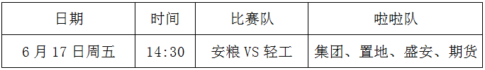 本場比賽后安糧集團足球隊取得三連勝,領跑積分榜。第四輪比賽將于6月17日下午2:30繼續(xù)上演,安糧足球隊將迎戰(zhàn)安徽輕工隊,我們期待安糧好男兒新的精彩!