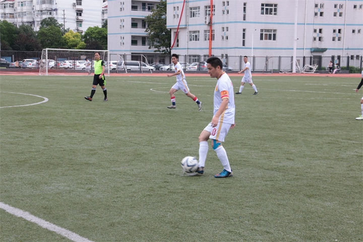 本場比賽由我們安糧足球隊迎戰(zhàn)服裝公司代表隊。下午隊員們早早的就來到了比賽場地進行賽前熱身訓練,受合肥近一段降雨的影響,草坪上的積水跟著滾動的足球不時濺起水花。14時30分,隨著主裁判一聲哨響,安糧足球隊與服裝公司代表隊正式拉開了比賽的帷幕。安糧足球隊隊員們敢打敢拼,積極跑位傳球,配合默契,體現(xiàn)了良好的團隊精神。比賽中,雙方隊員你來我往,互有攻防。場外的啦啦隊和觀眾也被場上的緊張氛圍所感染,助威聲、加油聲此起彼伏,鼓聲陣陣,響徹球場。安糧10號隊長方波賽場上防守時,不慎摔倒將膝蓋擦傷,頓時鮮血直流,只是用清水將受傷處沖洗一下繼續(xù)作戰(zhàn),極大地鼓舞了場上隊員的士氣。我們的隊員在場上奮力拼搏,多次獲得門前搶點機會,無奈射門四次擊中橫梁、兩次擊中立柱,均與進球失之交臂。雖然我們沒能進攻得手,但是我們隊員的防守做的相當?shù)轿唬b公司代表隊幾次有威脅的射門都被我們的隊員一一化解。比賽最終以0:0收場。