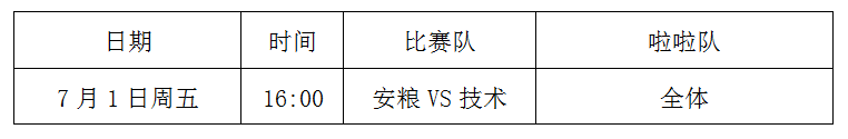本場比賽可以說是對安糧健兒們又一次實戰(zhàn)歷練,場上各位隊員團結(jié)協(xié)作,奮力拼搏,勇于爭先,場下拉拉隊隊員吶喊助威,良好地展現(xiàn)了安糧人的精神面貌。7月1日將進行本次球賽的最后一場比賽,由安糧足球隊對陣技術(shù)公司代表隊,我們期待安糧足球隊再傳捷報!