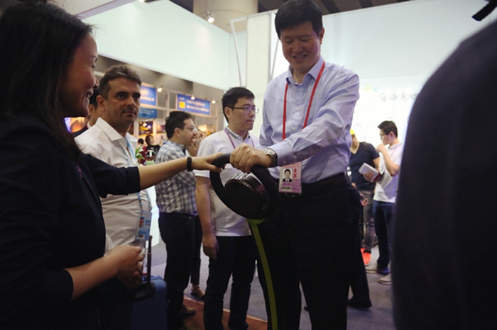 張副省長一行領(lǐng)導(dǎo)詳細(xì)詢問了安糧進(jìn)出口業(yè)務(wù)經(jīng)營發(fā)展?fàn)顩r,并對現(xiàn)場展出的安糧自主品牌——Spadger(賓雀)品牌平衡車、電動滑板車等出口新產(chǎn)品產(chǎn)生了濃厚興趣。省商務(wù)廳張箭廳長還親自體驗了展位熱點產(chǎn)品——Spadger(賓雀)平衡車的駕駛樂趣。
