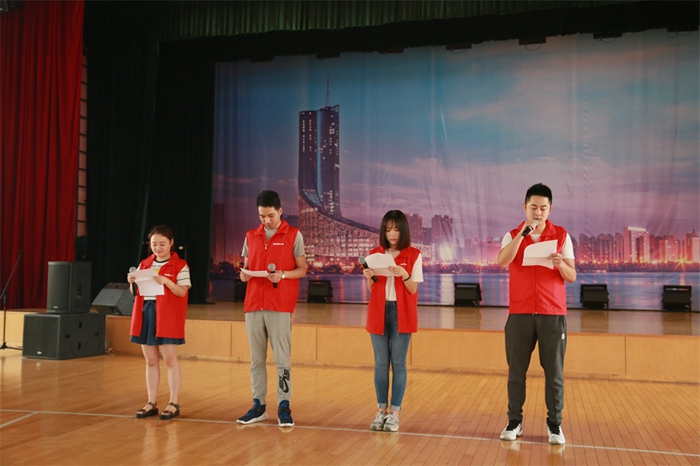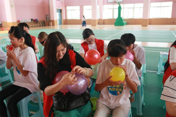見面會(huì)上,團(tuán)委書記方嘉亮向老師和小朋友們介紹了安糧集團(tuán)情況及本次活動(dòng)的安排。小朋友們?yōu)榘布Z集團(tuán)的“大哥哥”、“大姐姐”們表演了舞蹈和古箏演奏,志愿者代表為小朋友們演唱了歌曲《隱形的翅膀》。孩子們雖然在聽力、視力、語言表達(dá)上有障礙,但是,精彩的舞蹈、動(dòng)聽的琴聲、無邪的笑臉讓這樣一群“特殊”的孩子們更顯珍貴。表演結(jié)束,志愿者們用熱烈的掌聲表達(dá)內(nèi)心的感動(dòng)與贊揚(yáng)。才藝表演結(jié)束后,志愿者們與小朋友們“一對(duì)一”結(jié)對(duì)子,進(jìn)行了一場生動(dòng)活潑的吹氣球游戲,志愿者們還向小朋友們贈(zèng)送了精心準(zhǔn)備的兒童節(jié)小禮物,孩子們?yōu)橹驹刚叽魃狭思t領(lǐng)巾。