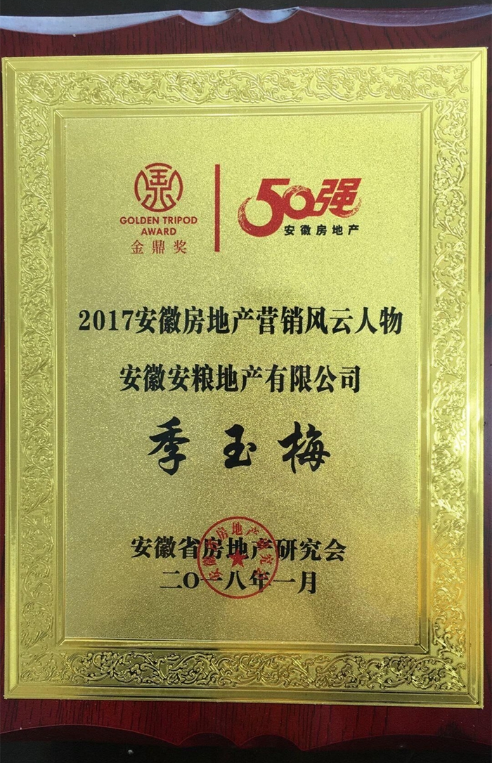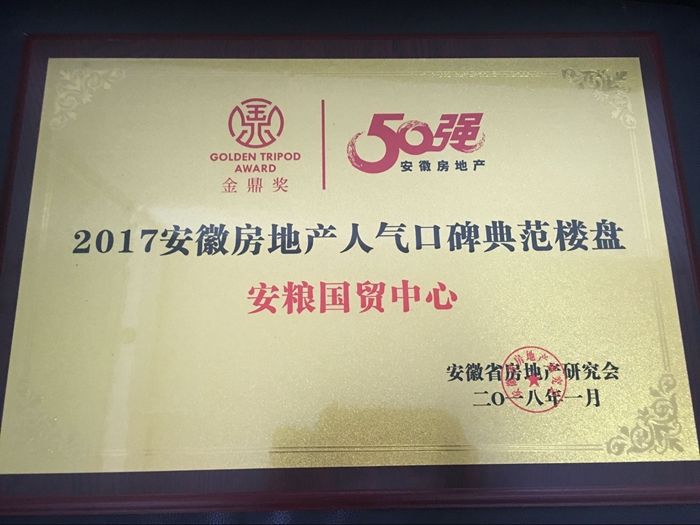 安徽眾多優(yōu)秀品牌房企群雄逐鹿,經(jīng)由安徽百萬地產(chǎn)精英、數(shù)十位行業(yè)專家及大眾評審親鑒共證,安糧地產(chǎn)實力所歸,勇奪金鼎!榮獲2017年安徽房地產(chǎn)綜合實力50強(qiáng)第8位及2017年安徽房地產(chǎn)十大優(yōu)秀誠信企業(yè),安糧國貿(mào)中心項目榮獲2017安徽房地產(chǎn)人氣口碑典范樓盤。同時,安糧國貿(mào)中心營銷總監(jiān)季玉梅榮獲2017安徽房地產(chǎn)營銷風(fēng)云人物。