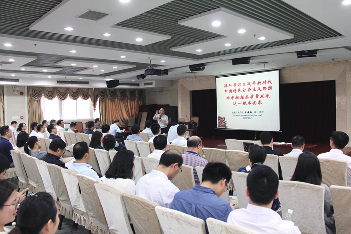 本次報告會邀請了安徽省行政學院黨委委員、副院長袁維海教授主講。袁教授圍繞新時代、新征程、新矛盾、新方略、新舉措、新要求六個方面的內容,深入闡釋了習近平新時代中國特色社會主義思想的深刻內涵。他通過用大量實例和經濟數據作支撐,結合中國經濟已從高速增長轉向高質量發(fā)展并正處于轉變發(fā)展方式、優(yōu)化經濟結構、轉換增長動力的攻關期,全面解讀了黨的十九大報告。其中,對深刻領會新常態(tài)時代這個發(fā)展邏輯進行了系統闡述和深入分析,觀點獨到,給人啟迪,對各單位進一步深入貫徹落實黨的十九大精神,推動安糧集團改革發(fā)展起到了積極作用。