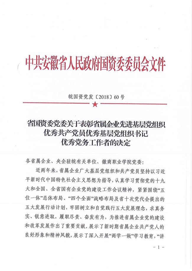 武義海同志榮獲安徽省國(guó)資系統(tǒng)“優(yōu)秀共產(chǎn)黨員”稱號(hào)
