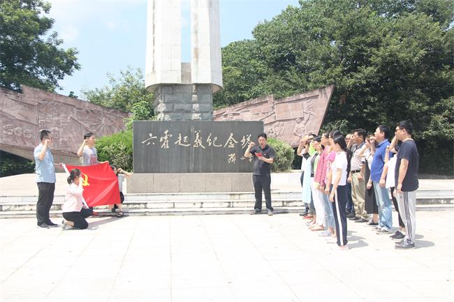 參觀完革命舊址群,頂著烈日和30多度的高溫,攀登144級臺階,大家來到了鄧小平親筆題寫的六霍起義紀(jì)念塔,在支部宣傳委員兼紀(jì)檢委員、副總經(jīng)理陳建軍帶領(lǐng)下,大家面對黨旗和紀(jì)念塔進(jìn)行了莊嚴(yán)的宣誓活動(dòng)。