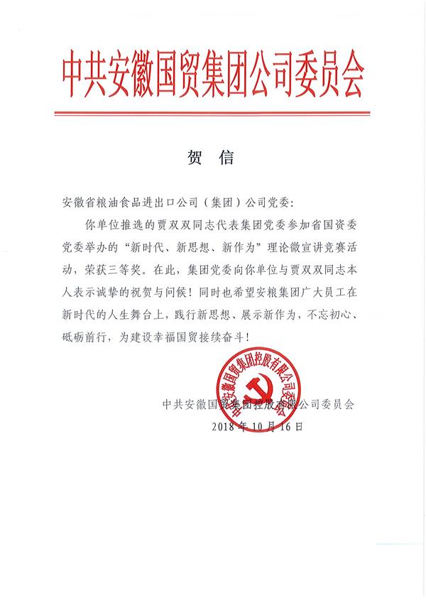為深入學(xué)習(xí)宣傳習(xí)近平新時(shí)代中國(guó)特色社會(huì)主義思想,省國(guó)資委黨委近日組織開展了“新時(shí)代、新思想、新作為”理論微宣講競(jìng)賽活動(dòng),經(jīng)過(guò)國(guó)貿(mào)集團(tuán)系統(tǒng)內(nèi)層層選拔、好中擇優(yōu),安糧集團(tuán)推薦的選手--來(lái)自安糧置地的賈雙雙獲得了代表國(guó)貿(mào)集團(tuán)參加本次微宣講競(jìng)賽的資格,并最終在比賽中榮獲三等獎(jiǎng)。