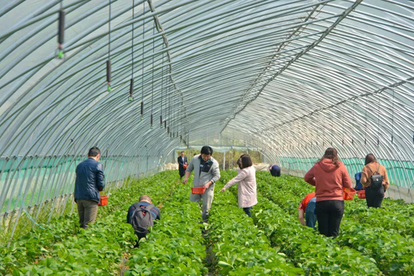 中午,在當(dāng)?shù)叵愦晦r(nóng)家樂飽嘗了一頓鄉(xiāng)間美味后,我們乘車前往舒城扶貧產(chǎn)業(yè)園——草莓示范園。成片的大棚映入眼簾,馥郁的草莓甜香撲面而來,繽紛靚麗的身影在田間穿梭忙碌,一個個籃筐里漸漸壘起了小山,品嘗著草莓的甜蜜,滋潤喉間,其樂無窮。下午三時,我們乘坐大巴,踏上歸程。