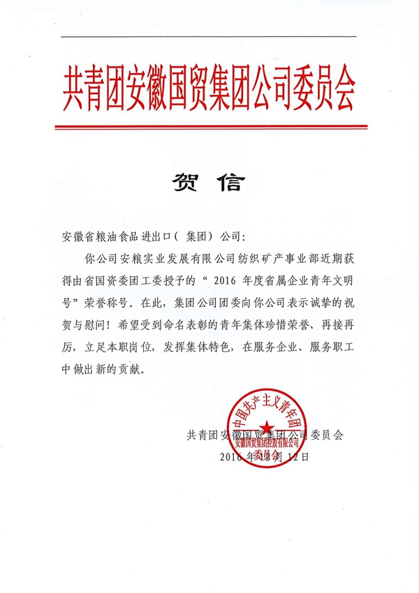 對于小伙伴們來說,家人們做出的犧牲成為了最堅強的后盾,加上公司領(lǐng)導的關(guān)懷和鼓勵,給了整個團隊巨大的拼搏動力,他們擼起袖子加油干,全心全意撲在工作上,最近流行的“996”對他們來說早就是家常便飯,即便是周日也隨時待命。在大家的共同努力下,短短幾年的時間,紡織品的年出口額從金融危機后的一千多萬美元上升到目前將近五千萬美元。2016年,安糧實業(yè)紡織品團隊被省國資委團工委評為“省屬企業(yè)青年文明號”,這也是安糧系統(tǒng)首個獲此殊榮的集體,辛勤的付出終于結(jié)出累累碩果。