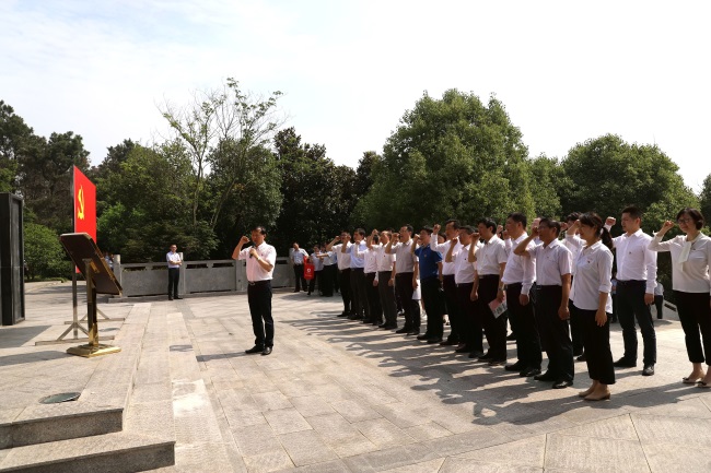 堅(jiān)守初心,勇?lián)姑?/span>6月28日上午,安糧集團(tuán)黨委組織集團(tuán)黨委班子及系統(tǒng)各基層黨支部支委以上干部共30余人赴肥東縣茶壺山革命烈士陵園、瑤崗渡江戰(zhàn)役總前委舊址,舉行緬懷革命先烈、重溫入黨誓詞、接受革命傳統(tǒng)教育活動(dòng),并現(xiàn)場召開“不忘初心、牢記使命”主題教育動(dòng)員會(huì),以革命傳統(tǒng)教育開啟安糧集團(tuán)主題教育第一課。