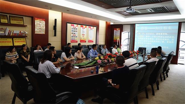 參觀結(jié)束后,實(shí)業(yè)黨支部特邀南昌市委黨?;A(chǔ)理論教研部副主任趙坤教授為參加活動的全體黨員在紀(jì)念館黨員活動室就地上了一堂主題為“重溫紅色經(jīng)典,深入學(xué)習(xí)四個(gè)意識、四個(gè)自信、兩個(gè)維護(hù)核心精神”的現(xiàn)場黨課,既詳實(shí)又生動地介紹了江西這片紅色土地上的革命歷史,從黨史的視角梳理了“四個(gè)意識”、“四個(gè)自信”、“兩個(gè)維護(hù)”的重要性和迫切性,進(jìn)一步領(lǐng)會了習(xí)總書記關(guān)于推進(jìn)紅色基因傳承的要求。