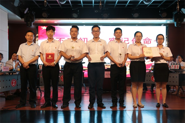 經(jīng)過支部考核、初賽等層層選拔,6支參賽隊伍最終脫穎而出,進(jìn)入決賽。決賽題型分為選擇題、必答題、搶答題、風(fēng)險題和附加題,內(nèi)容涵蓋了習(xí)近平新時代中國特色社會主義思想、黨的十九大精神、黨章和黨內(nèi)法規(guī)、紀(jì)檢監(jiān)察、黨的歷史等內(nèi)容等相關(guān)知識。