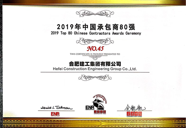 11月8日,由中國《建筑時報》和美國《工程新聞記錄》(ENR)兩家行業(yè)權(quán)威媒體主辦的2019ENR/建筑時報“中國承包商80強和工程設(shè)計企業(yè)60強”頒獎典禮在浙江杭州舉行。合肥建工再次入圍“中國承包商80強”,位居第45位。
