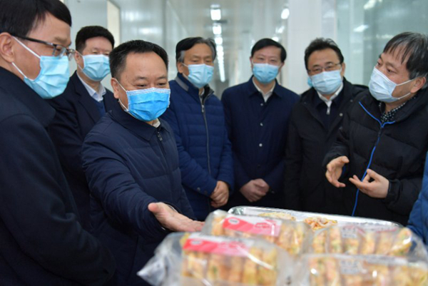 李國英省長首先認真聽取了巢湖嘉誼食品有限公司總經理朱玉倉關于企業(yè)疫情防控和復工復產工作的情況匯報。李省長重點了解了企業(yè)疫情防控的具體措施、應急預案,并詳細了解了企業(yè)復工復產的進度,他要求企業(yè)負責人在疫情防控最吃勁的關鍵階段一定不能麻痹大意,要堅持疫情防控和復工復產兩手抓兩手硬,要在切實做好疫情防控的基礎上,有序復工復產。