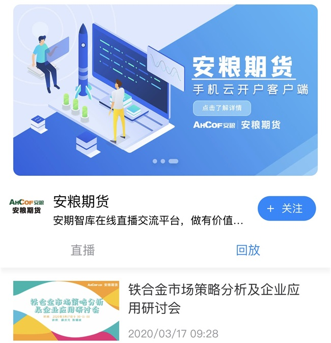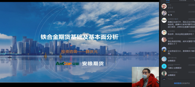 3月17日,安糧期貨利用網(wǎng)絡(luò)直播平臺(tái)召開“鐵合金市場(chǎng)策略分析及企業(yè)應(yīng)用研討會(huì)”,這已經(jīng)是自疫情發(fā)生以來安糧期貨舉辦的第13場(chǎng)線上營(yíng)銷會(huì)議,有效解決了日常營(yíng)銷會(huì)議無法開展的難題。據(jù)統(tǒng)計(jì)已有累計(jì)超過11000人次參與了觀看,得到業(yè)界廣泛好評(píng)。