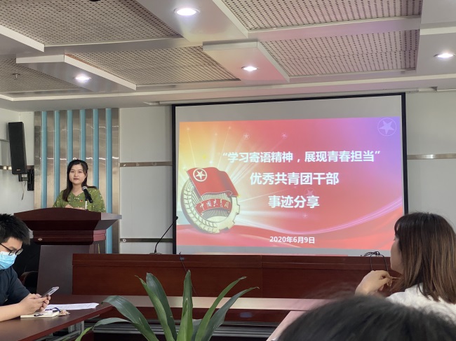 “省屬企業(yè)優(yōu)秀共青團(tuán)干”稱號(hào)獲得者、安糧國際團(tuán)支部副書記兼組織委員趙夢(mèng)晶同志進(jìn)行優(yōu)秀事跡分享。她結(jié)合在共青團(tuán)工作經(jīng)歷和自身感悟鼓勵(lì)青年團(tuán)員們積極擔(dān)當(dāng),踏實(shí)做事,在團(tuán)員青年中引起了強(qiáng)烈的反響和共鳴。隨后與會(huì)人員共同觀看了由安糧青年員工精心編排參演的慶祝新中國成立70周年、五四運(yùn)動(dòng)100周年主題情景劇《使命的接力》。