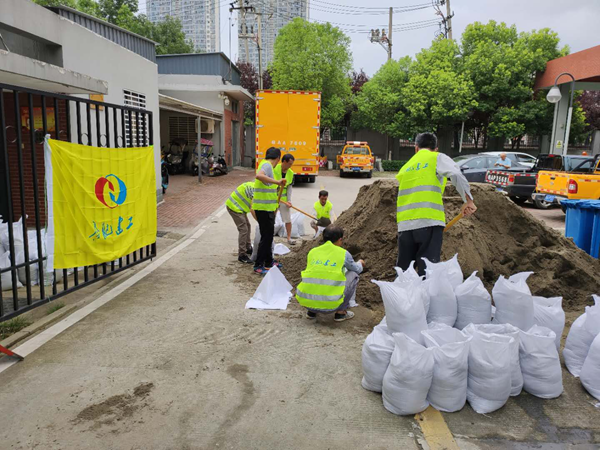 到達目的地后,隊員們在突擊隊長的統(tǒng)一指揮下,有條不紊地裝填防汛沙袋,加固沙堤。經(jīng)過近八個小時的連續(xù)奮戰(zhàn)和堅守,八所泵站外圍一條條近1.5米的防洪沙堤終于筑成。為了方便人員、車輛出入,每個泵站保留了一個出入口,合肥建工統(tǒng)一安排責任人24小時值守,嚴密監(jiān)察水情、水位,一旦發(fā)生險情,將在第一時間內合攏主出入口,防止因雨水倒灌而導致機房、設備受損。