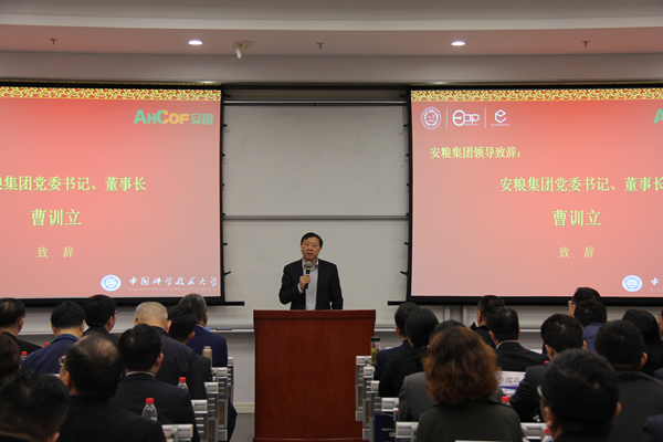 2020年10月30日,中國科學技術大學—安糧集團EDP、MBA研修班在中國科學技術大學國際金融研究院隆重開班,安糧集團董事長曹訓立和中科大管理學院黨委副書記芮鋒分別致辭。