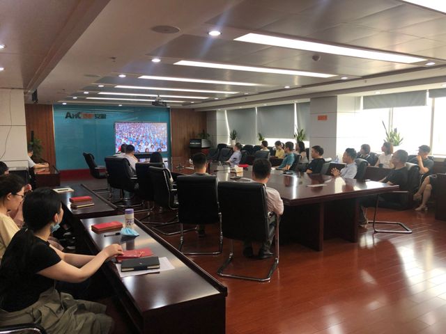 (安糧集團(tuán)黨委班子、集團(tuán)直屬黨支部、安糧控股黨支部觀看大會直播)
