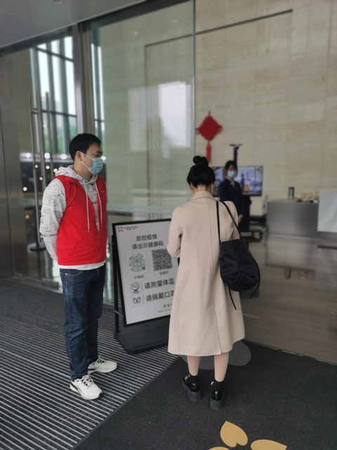 面對突如其來的新一輪嚴(yán)峻疫情,早高峰時期員工進入大樓前的雙碼核驗和測量體溫工作,導(dǎo)致在入口處排起長隊,影響同事們按時到崗,這給安糧中心物業(yè)管理帶來了難題。安糧團委在集團黨委的指示下聞令而動、迅速集結(jié),來自集團團委各下屬支部的團員青年志愿者們,在做好個人防護的基礎(chǔ)上,穿起“紅馬甲”,主動申請投身到疫情防控工作中,大大加快了早高峰通行效率。