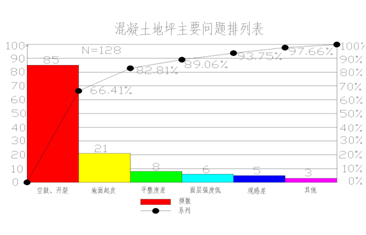 2021年6月開始室內(nèi)地坪的施工,在最初對地坪施工質(zhì)量的檢查中發(fā)現(xiàn),其一次性驗(yàn)收合格率僅為85.7%,還有較大的提升空間。項(xiàng)目團(tuán)隊(duì)經(jīng)過研討后,確定本次的QC活動(dòng)課題為《提高室內(nèi)混凝土地坪施工一次性合格率》。隨后QC小組迅速展開工作,對項(xiàng)目已施工的 8#、10#、12#樓地坪質(zhì)量進(jìn)行檢查,并對檢查的900個(gè)檢查點(diǎn)的數(shù)據(jù)進(jìn)行分析,發(fā)現(xiàn)空鼓、開裂是混凝土地坪的主要質(zhì)量缺陷。