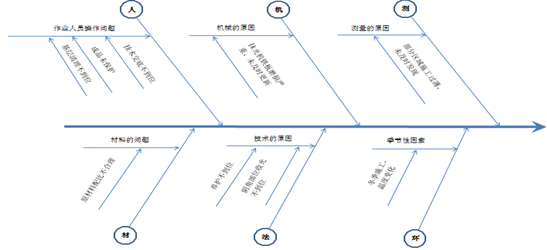 圍繞著“空鼓”和“開裂”兩項(xiàng)主要缺陷,小組成員對整個(gè)施工流程進(jìn)行旁站,深入各個(gè)流程進(jìn)行檢查,召開分析會(huì),運(yùn)用因素分析法從“5M1E”6個(gè)方面進(jìn)行分析、歸納出10項(xiàng)末端因素。