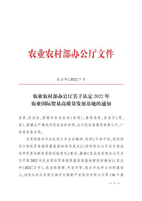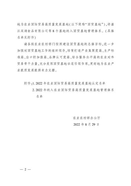 日前,農(nóng)業(yè)農(nóng)村部發(fā)布了《關(guān)于認(rèn)定2022年農(nóng)業(yè)國(guó)際貿(mào)易高質(zhì)量發(fā)展基地的通知》,經(jīng)省級(jí)推薦、專(zhuān)家評(píng)審、綜合評(píng)議和公示,認(rèn)定安徽安糧實(shí)業(yè)發(fā)展有限公司等116個(gè)基地為2022年農(nóng)業(yè)國(guó)際貿(mào)易高質(zhì)量發(fā)展基地。