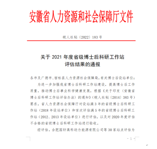 為加強(qiáng)博士后科研工作站建設(shè),推動(dòng)博士后事業(yè)科學(xué)健康發(fā)展,安徽省人社廳對(duì)全省108家2021年度設(shè)站滿(mǎn)3年和首次評(píng)估滿(mǎn)5年的省級(jí)博士后科研工作站進(jìn)行了綜合評(píng)估。最終,合肥建工博士后科研工作站等30家單位獲省優(yōu)稱(chēng)號(hào)。