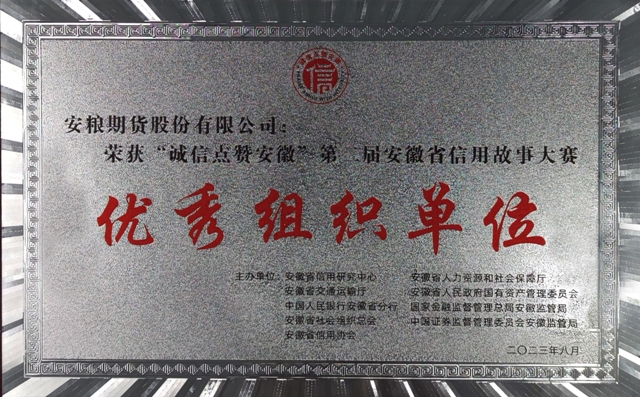 9月6日下午,由安徽省信用研究中心、安徽省人力資源和社會保障廳、安徽省交通運輸廳、安徽省人民政府國有資產(chǎn)監(jiān)督管理委員會、中國人民銀行安徽省分行、國家金融監(jiān)督管理總局安徽監(jiān)管局、中國證券監(jiān)督管理委員會安徽監(jiān)管局、安徽省社會組織總會、安徽省信用協(xié)會等單位共同組織開展的“誠信點贊安徽”第二屆安徽省信用故事大賽活動圓滿落幕。經(jīng)過網(wǎng)絡(luò)投票和專家評審,安糧期貨喜獲佳績,榮獲“優(yōu)秀組織單位獎”,員工謝雙雙、鄭茜、劉永龍分別獲得征文類優(yōu)秀獎、演講類優(yōu)秀獎、微電影優(yōu)秀獎。在全省證券期貨參賽隊伍中名列前茅。