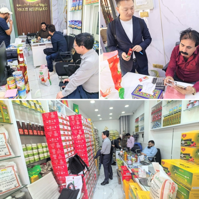 展會結束后,團隊赴迪拜木須巴扎傳統市場開展實地調研,走訪近十家終端店面,梳理當地番茄制品銷售渠道、價格體系等市場格局,同時開展地推工作,面對面收集終端商戶反饋。